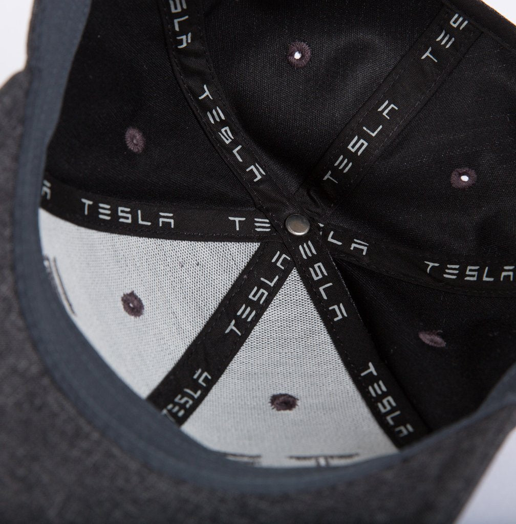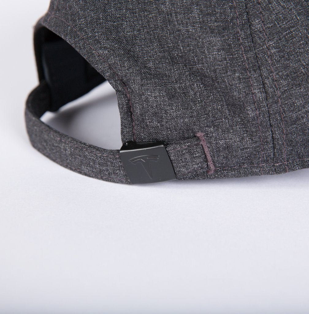 The Premium Worldmark Hat is constructed with style in mind. This hat features the Telsa Wordmark in gray on the front with an adjustable strap and a metal clasp on the back of the hat embossed with the Tesla T logo. One size fits most.