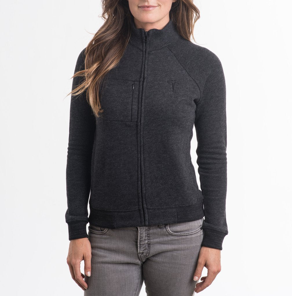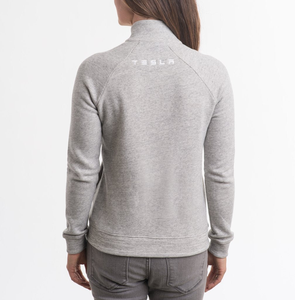 A fleece mock neck jacket with pockets made from organic cotton.  The Somerset Jacket is named after a Tesla Supercharger location in Pennsylvania.